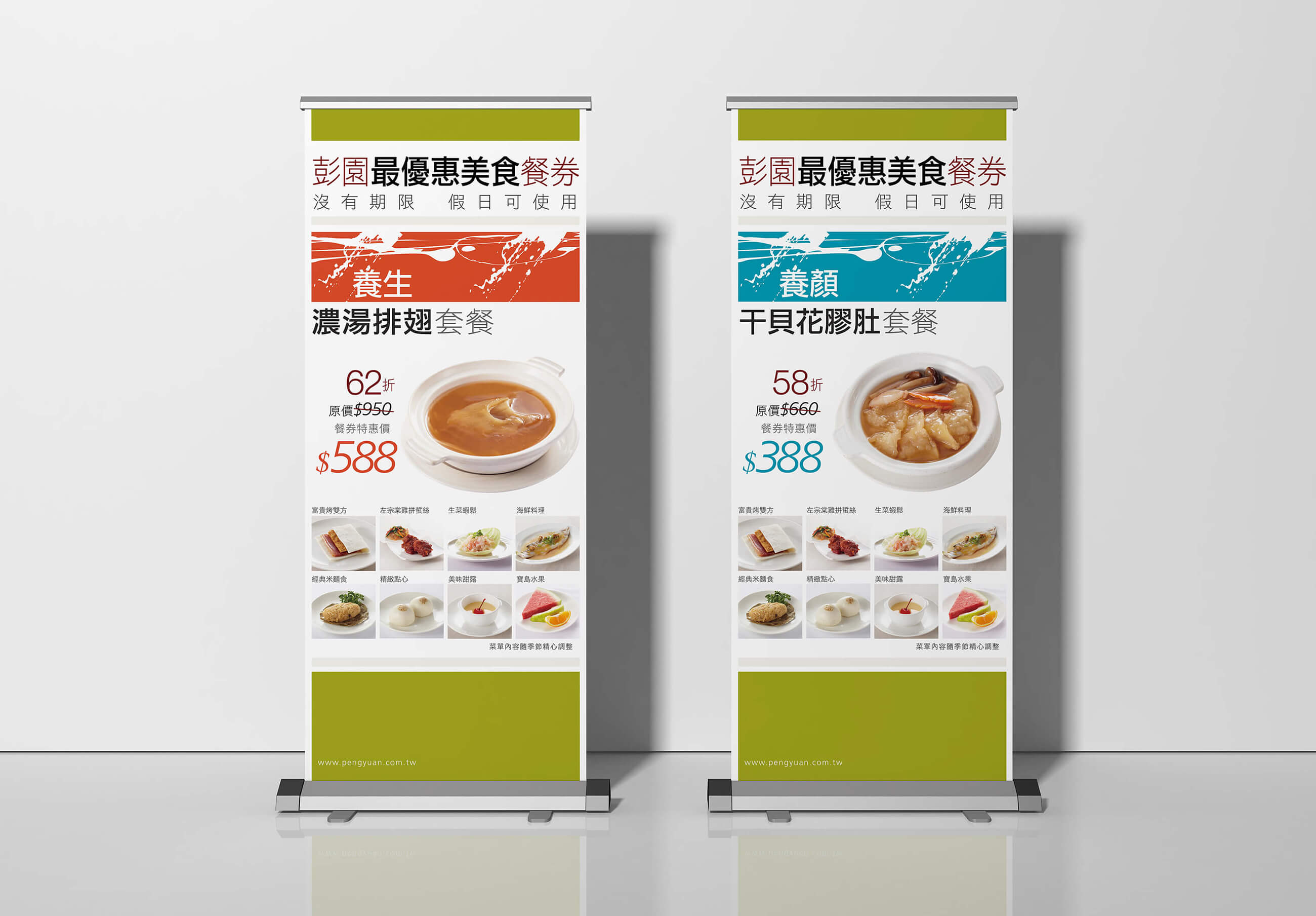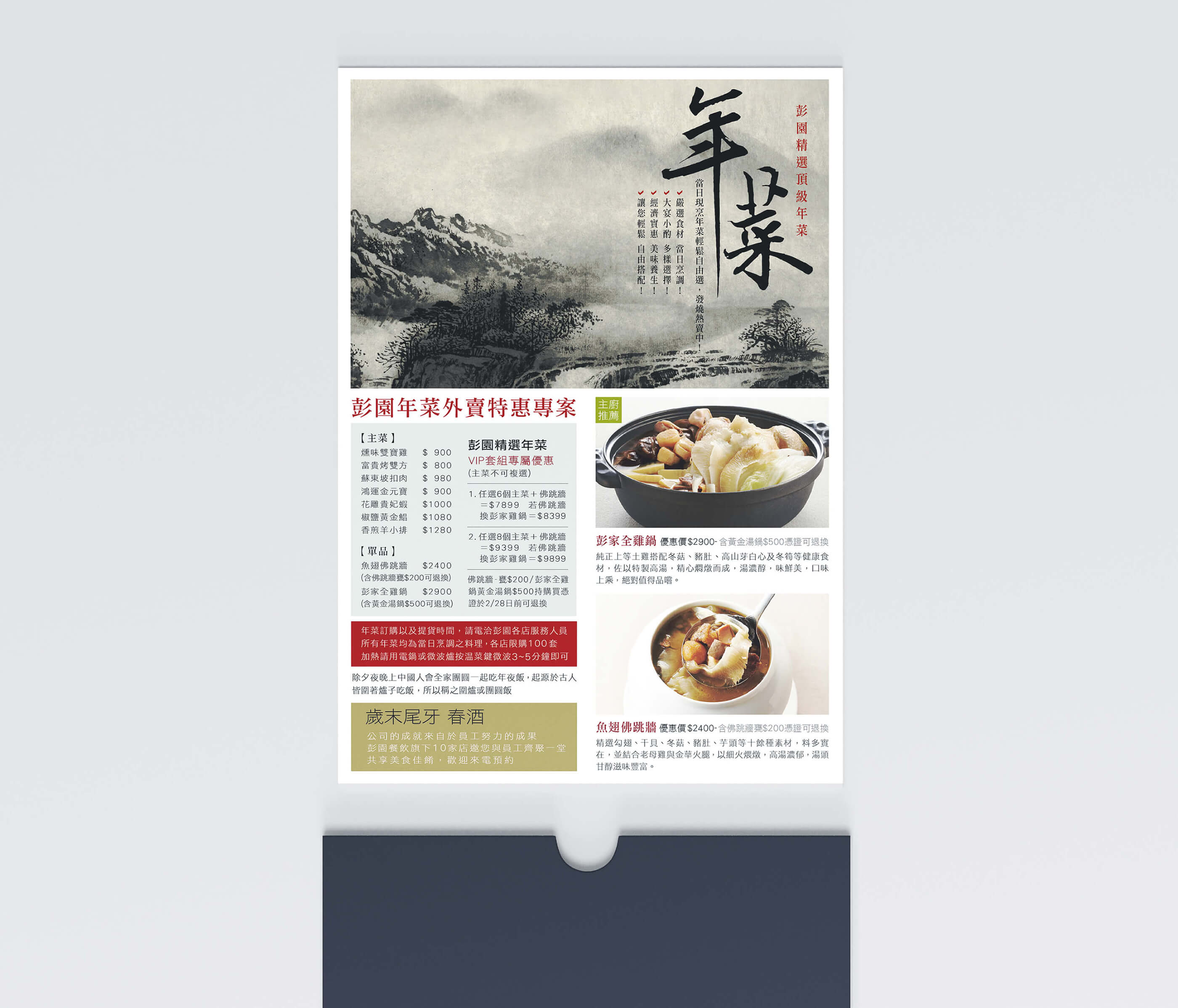 彭園餐飲集團 此客戶彭園餐飲集團,旗下以彭園湘菜館和彭園婚宴會館兩個系統為主,負責此品牌湘菜餐飲和婚宴會館 的整體視覺執行和相關控管,包含VI、宣傳製作物、市視覺、雜誌廣告、展場空間視覺呈現等。