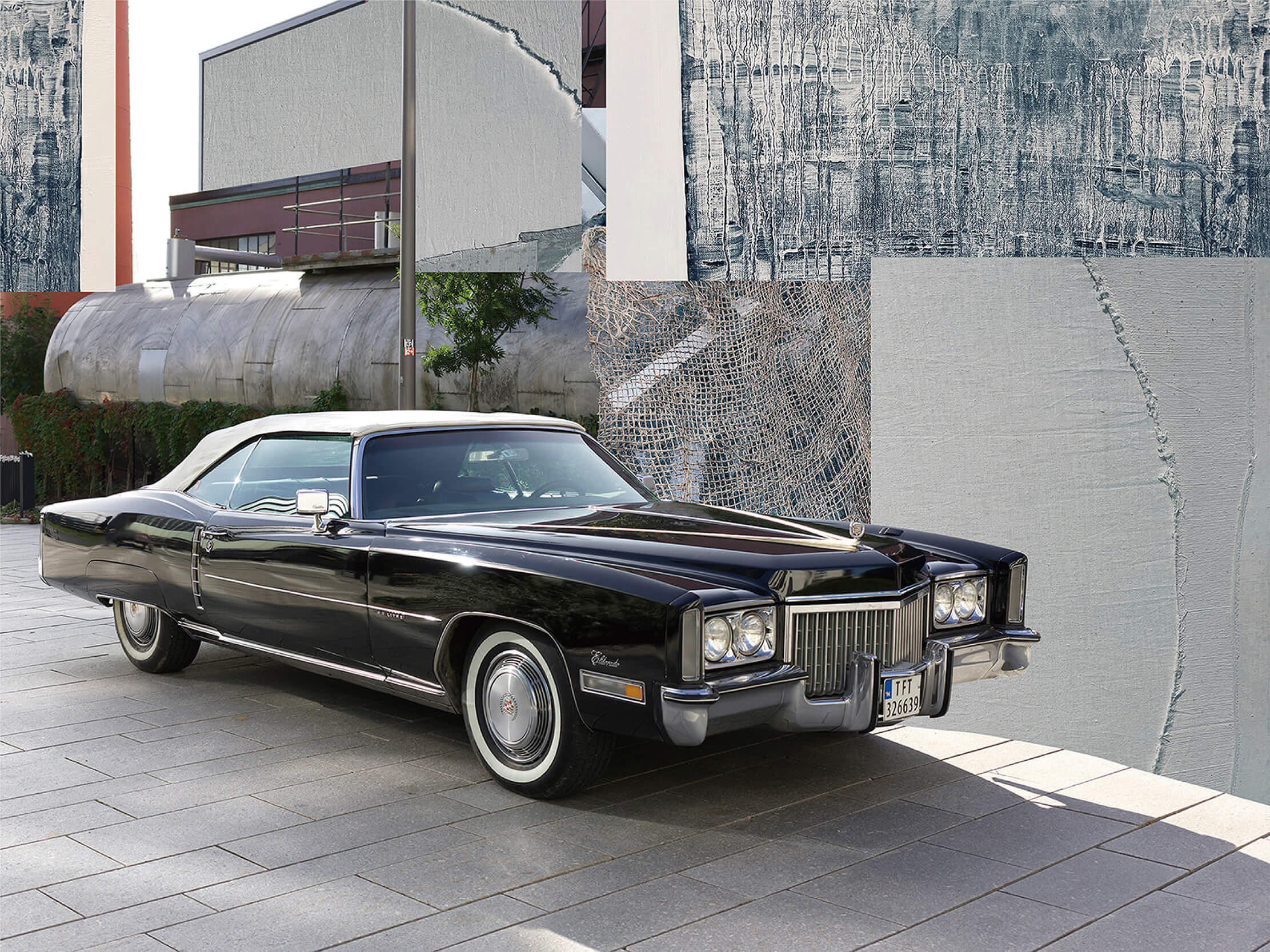 This work was photographed in Oslo, Norway. A classic Cadillac occupies the foreground, while the background is